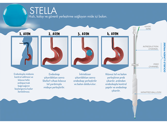 Stella, mide hacmini azaltarak tokluk hissini artırır ve kişinin daha az gıda ile doyma eşiğine ulaşmasını sağlar. Cerrahi müdahaleye gerek duyulmadan uygulanan bu sistem, hızlı iyileşme süreci ve düşük komplikasyon riskiyle hasta konforunu maksimuma çıkarır.
